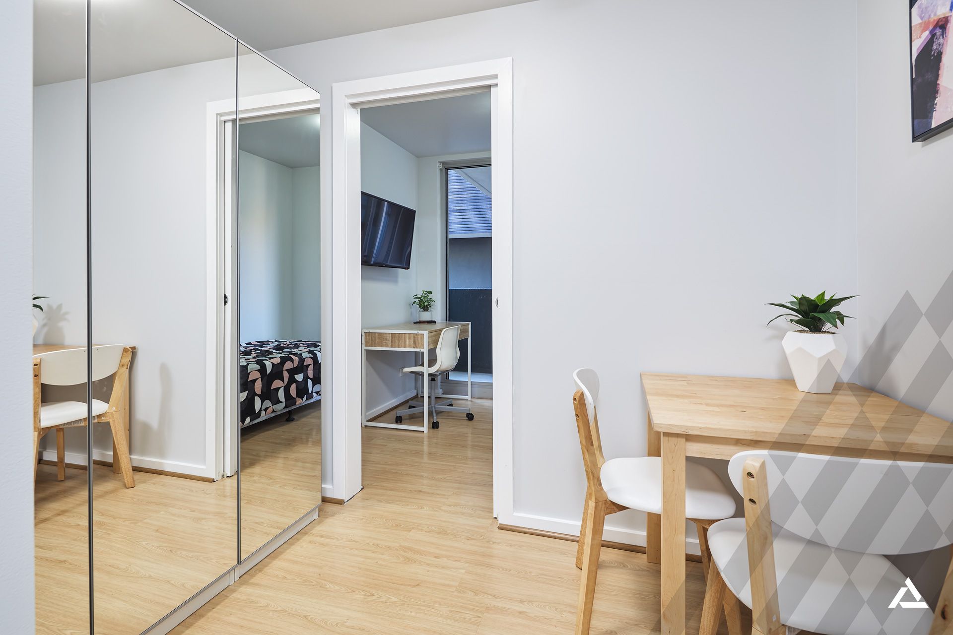 - Fully Furnished with a single bed, work space and dining suite