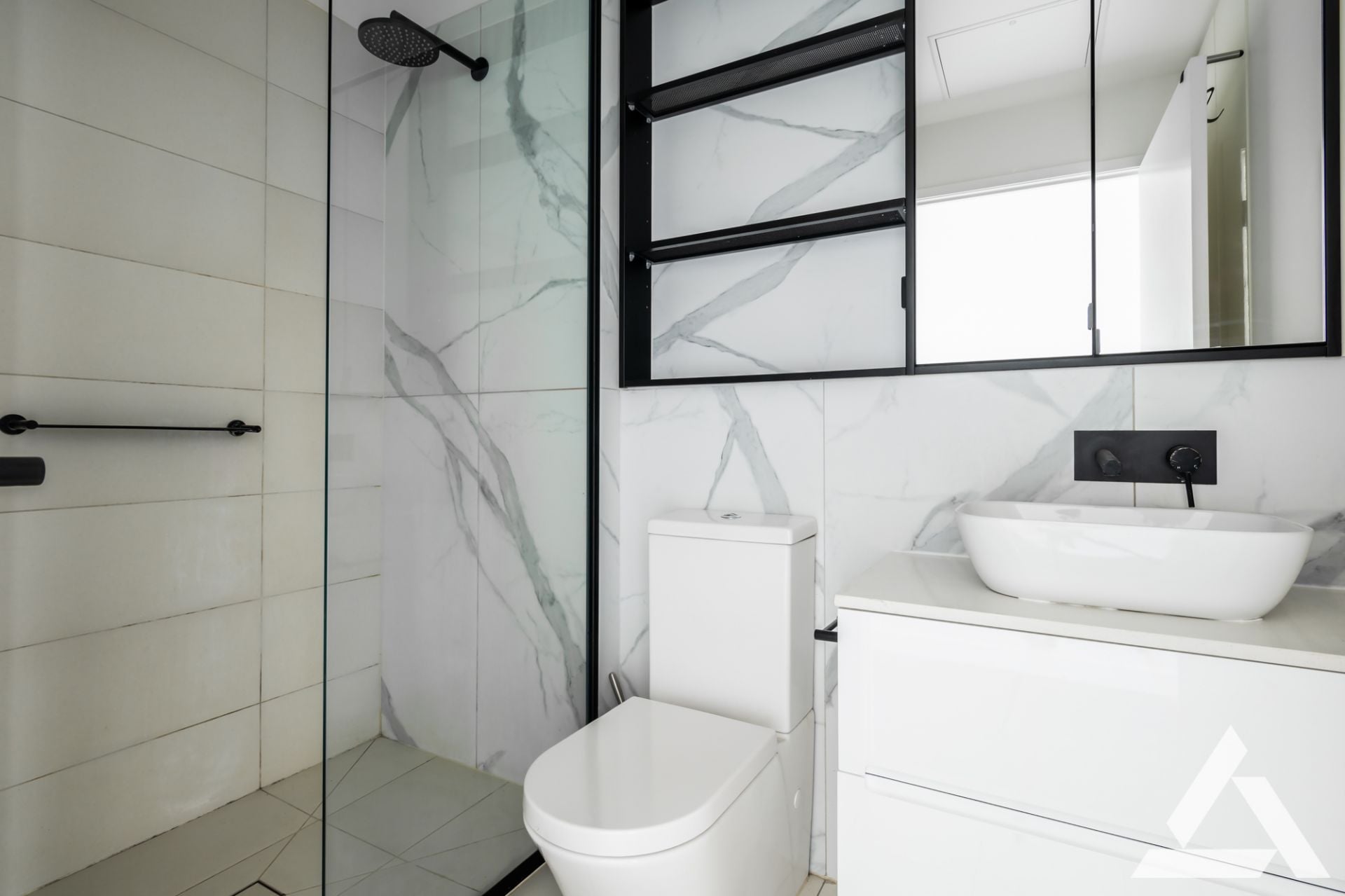 Modern bathroom with sleek finishes and ample storage