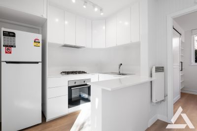 This newly renovated, fully furnished one bedroom features a generous living/dining room which is desirably open plan to the bright & practical kitchen, while the double-sized bedroom offers a built-in robe and ensuite access to the bathroom. The comfort of heating, a leafy position towards the rear of the block plus a valuable on-site parking space are all added highlights.