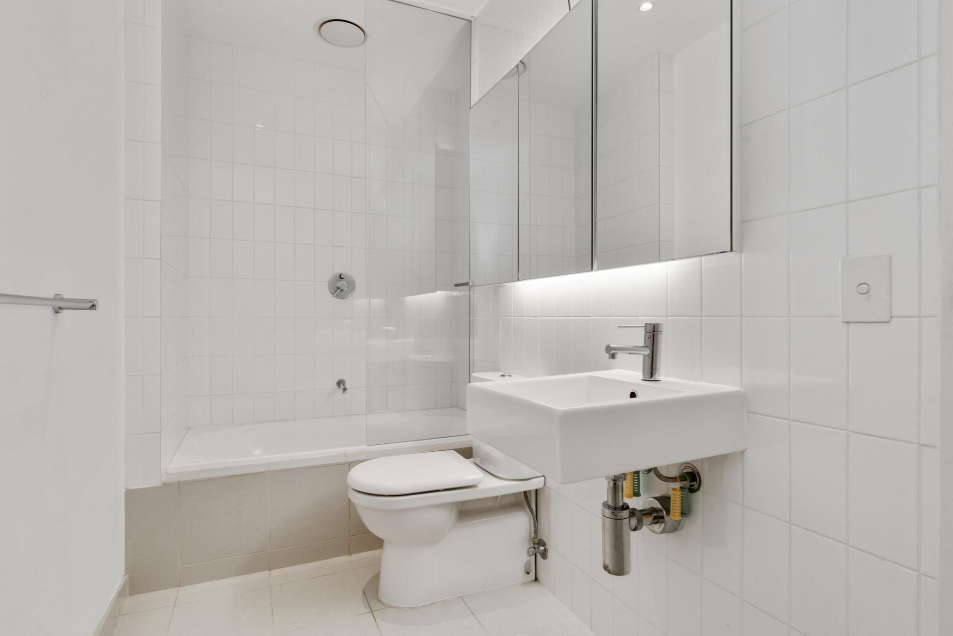 • Modern bathroom with shower-over-bath