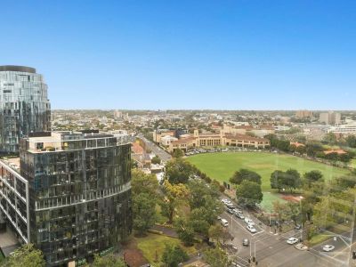 With views across the verdant Fawkner Park and the playing fields of Melbourne's prestigious Wesley College, this impressive three-bedroom Rhapsody apartment couples sustainable style with sophisticated inner-city living on one of the world's best-loved boulevards. A dazzling design by award-winning architect Karl Fender offers a superb balance of leading-edge luxury and environmental sustainability, while this dress circle destination places you within effortless reach of the CBD, cosmopolitan St Kilda and the serene sanctuary of Albert Park Lake. The complex itself has been designed to achieve low greenhouse emissions, while high-quality residents' amenities include a fully-equipped gym, meeting room, fashionable lobby and the added convenience of a ground floor cafe.