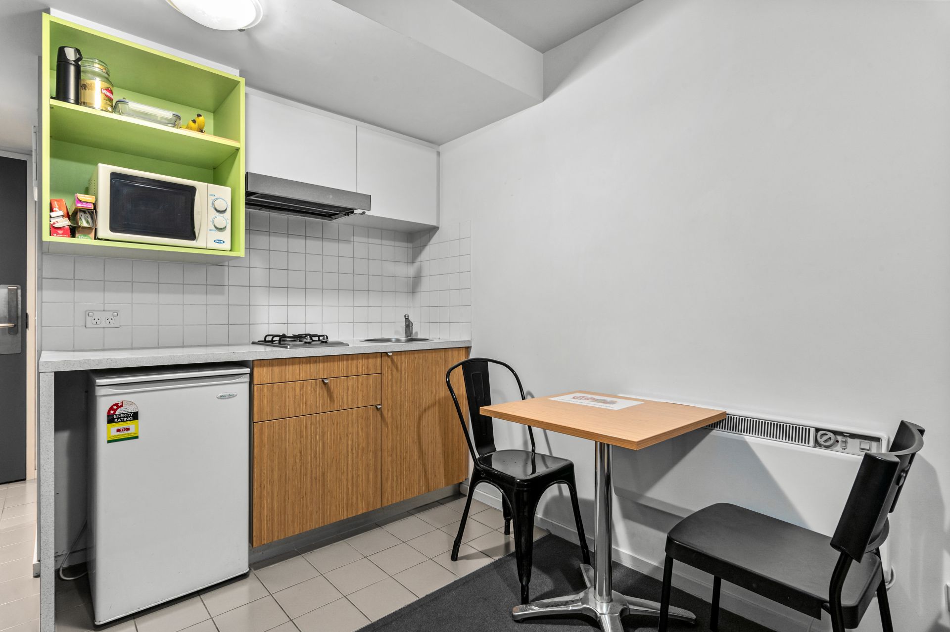 • Kitchenette featuring gas cooktop, microwave and fridge