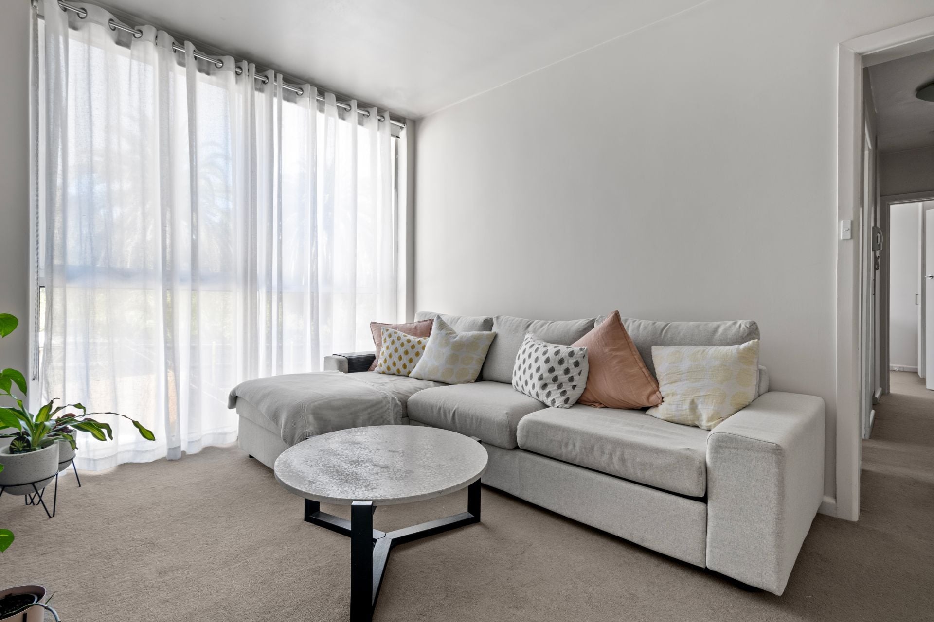 • Carpeted living and dining offers superb natural light