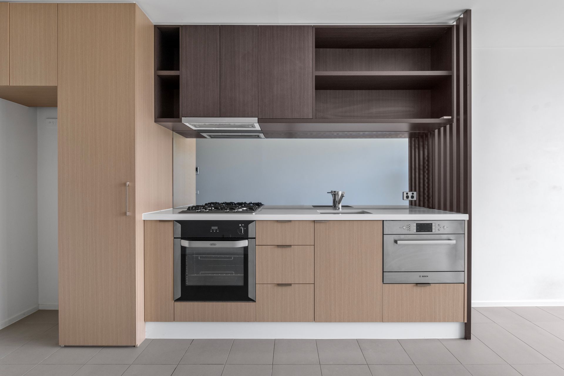 • Straight-line stone kitchen with quality stainless steel appliances