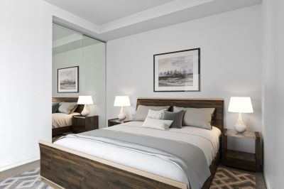 • Bedroom with sliding corner doors and built-in robe storage